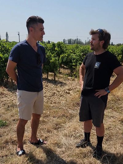 Roman with Loic in the vineyards of Domaine Les Sibu