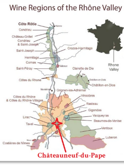 Côtes du Rhône: Area bordering Châteauneuf du Pape on the sands of St Georges, Codolet commune and on the sands of Gissac in Saint Laurent des Arbres.